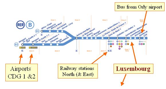 The closest station on the RER B line to the conference place is "Luxembourg" and is less than 500 meters away from ENSCP, the Conference location.