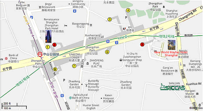 New World Mayfair Hotel Shanghai New World Mayfair Hotel Shanghai is located in the commercial centre of Chang Ning district, adjacent to Zhongshan Park. The hotel offers 605 luxurious, broadband-equipped rooms, a health club, and a magnificent outdoor pool, etc.Each room offers broadband Internet access, color television with remote control, satellite channels, IDD, and a minibar. The hotel is 10km to Hongqiao Airport (SHA), 50km to Pudong International Airport (PVG) and 6km to Shanghai Railway Station. It is only 10 minutes’ walk to the conference venue.The hotel is near Exit 5 of Zhongshan Park metro station. If you want to share the room with somebody, please just write down your name on the Reservation Card, and in the "Remarks" area (line 3 from the bottom) please indicate the type of room (the Double size room, or the King size room, etc) and the person's name who will share the room with you. The prices are the same, namely CNY 820net or CNY 700net for each room. But each room includes only one Breakfast, additional buffet breakfast will be charged at CNY147+15% service Charge per person at Mayfair Café. | |