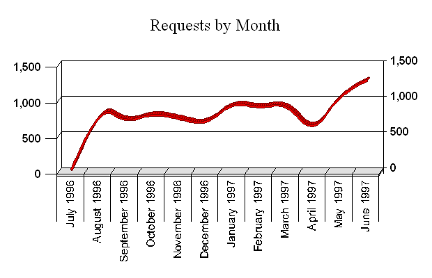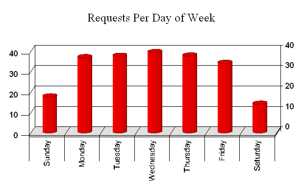 Shows which directories (or Folders) contain objects that are commonly requested. Depending on how the site is constructed, this could give information regarding the types of information most commonly requested. See also 'Requests by Object Types' to compare the number of requests for Pages vs. Graphics vs. other objects. Also consider using the Database Manager to create custom Groups of URLs. A group can contain any number of unique URLs or URL patterns that can be analyzed as a group. | |