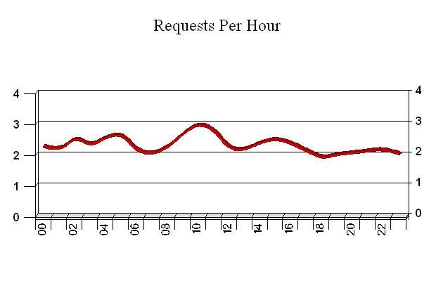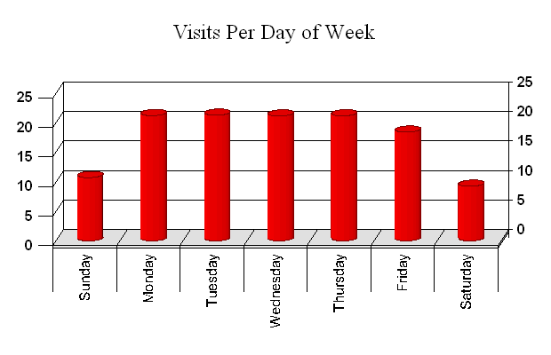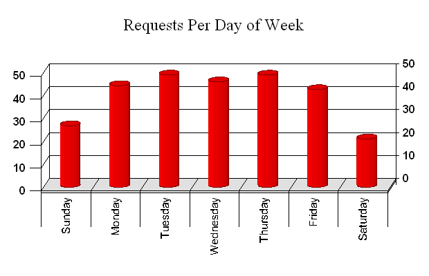 Shows the number of requests and visits in a typical week. See 'Average Requests and Visits by Day of Week' for statistics for each individual day of the week.