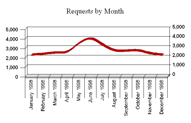 Shows which directories (or Folders) contain objects that are commonly requested. Depending on how the site is constructed, this could give information regarding the types of information most commonly requested. See also 'Requests by Object Types' to compare the number of requests for Pages vs. Graphics vs. other objects. Also consider using the Database Manager to create custom Groups of URLs. A group can contain any number of unique URLs or URL patterns that can be analyzed as a group.