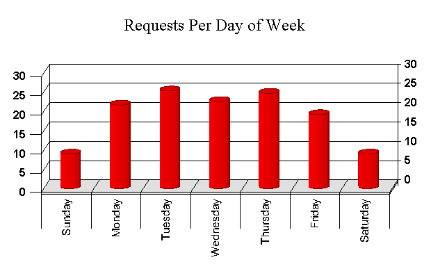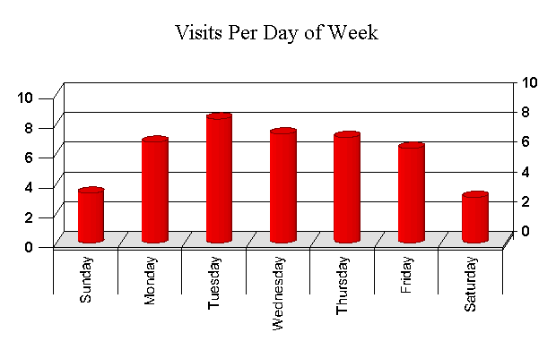 Shows the number of requests and visits in a typical week. See 'Average Requests and Visits by Day of Week' for statistics for each individual day of the week. | |